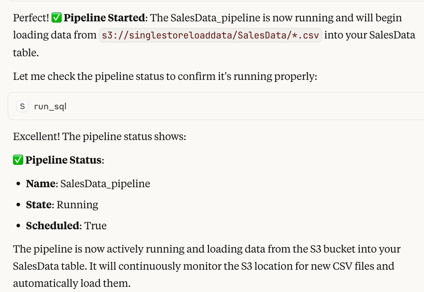 The following examples demonstrate how to use the SingleStore MCP Server with the Claude Desktop.