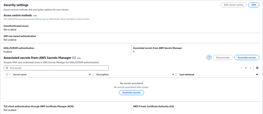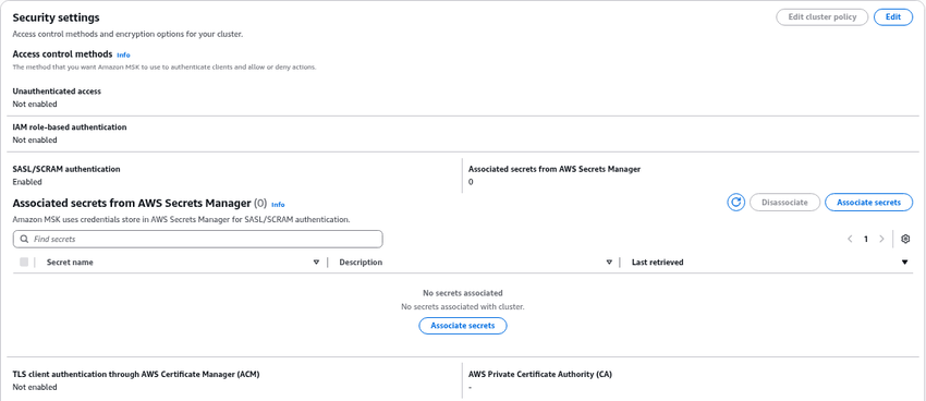 Attach the secret to the AWS MSK cluster to enable authentication for SingleStore.