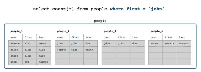 because the filter clause (where first = ‘john') includes the columns of the shard key.