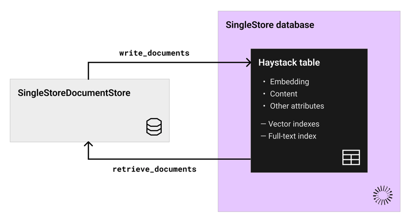 SingleStoreDocumentStoreto persist Haystack Document objects as rows. -