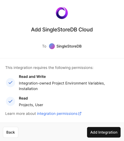 Go to the SingleStore Helios - Vercel integration page, and select Add Integration.