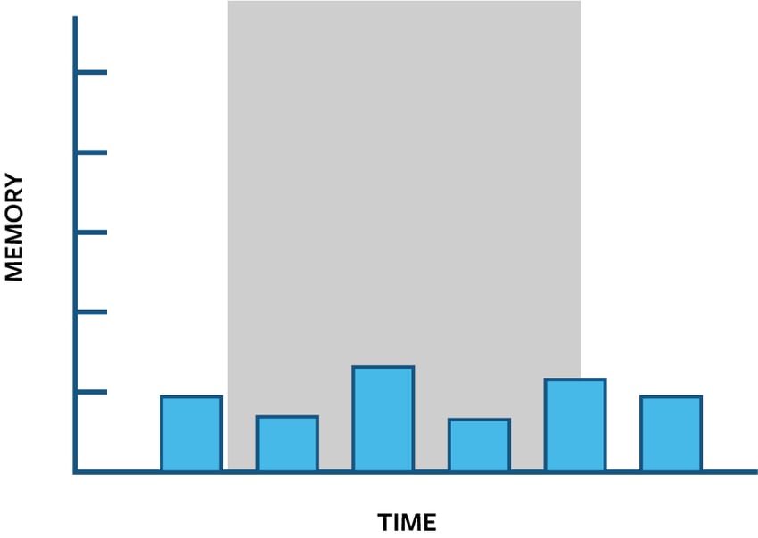 In this chart of memory usage over a time, the connection runs many small short lived queries.