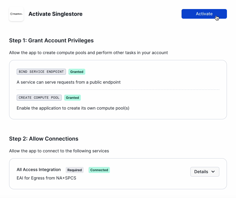 You can get the SingleStore Native App for Snowflake, SINGLESTORE_, from the Snowflake Marketplace.