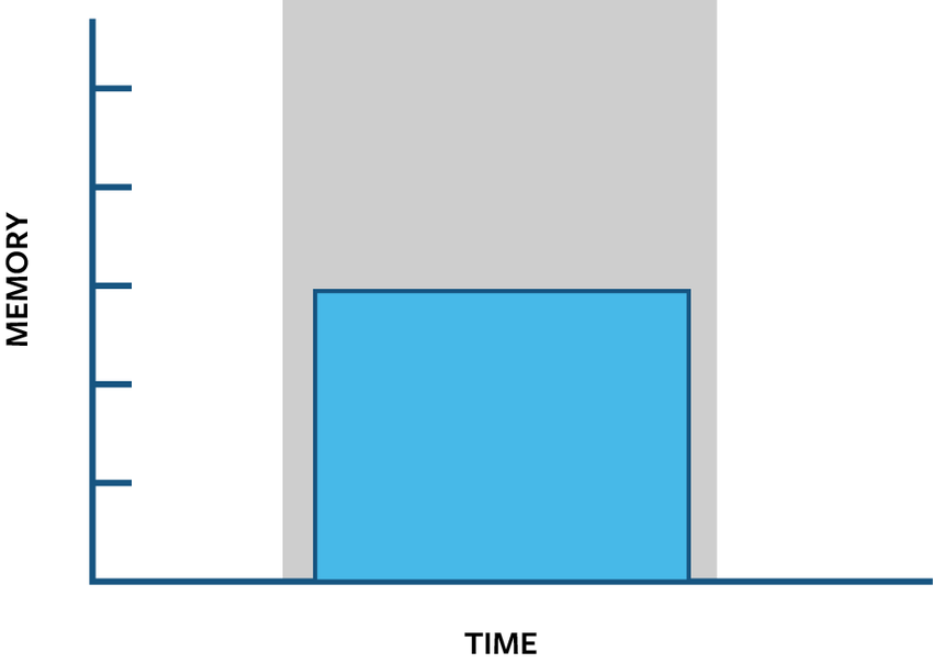 The following figure shows a different connection, with a single long running query that consumes a moderate amount of memory.