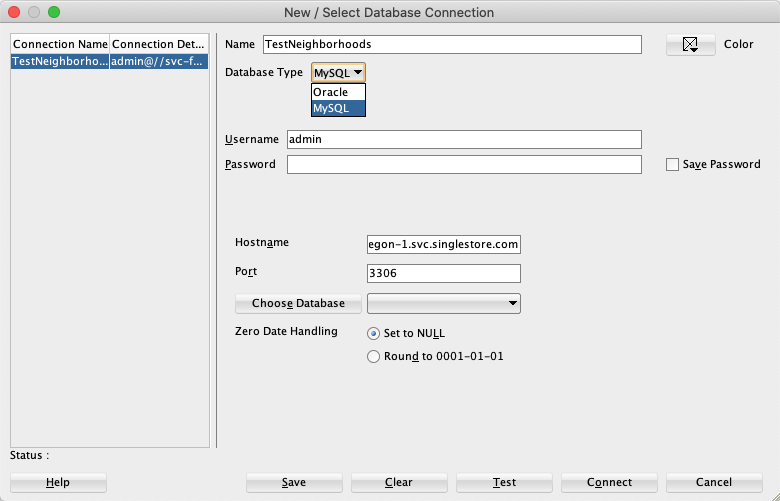 Hostname: The IP address or hostname of your SingleStore cluster.