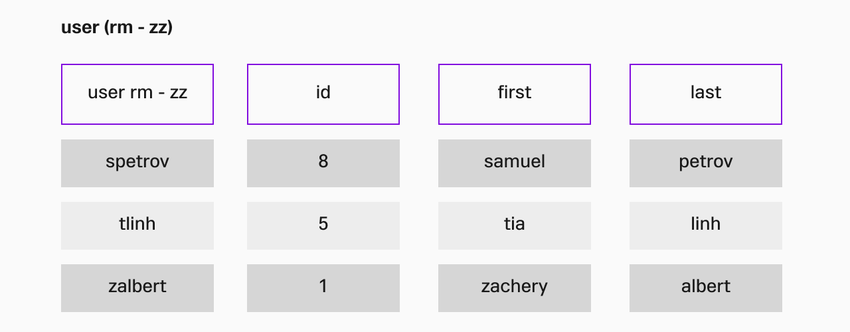 CREATE TABLE people (id INT AUTO_INCREMENT,user VARCHAR(24),first VARCHAR(24),last VARCHAR(24),SORT KEY (user),SHARD KEY (id));