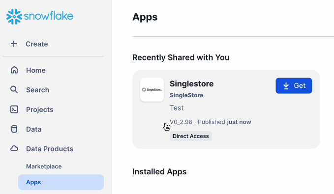 Once installed, the SingleStore app appears in Data Products > Apps > Installed Apps.