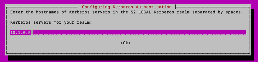 [realms]section in the/etc/krb5.file on this host will now resemble the following.conf [realms]S2.LOCAL = {kdc = 10.1.0.5admin_server = 10.1.0.5default_domain = s2.local} -