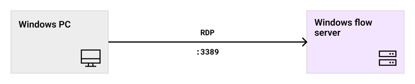 This setup uses Windows Remote Desktop Protocol (RDP) to connect to a Flow server running on Windows.