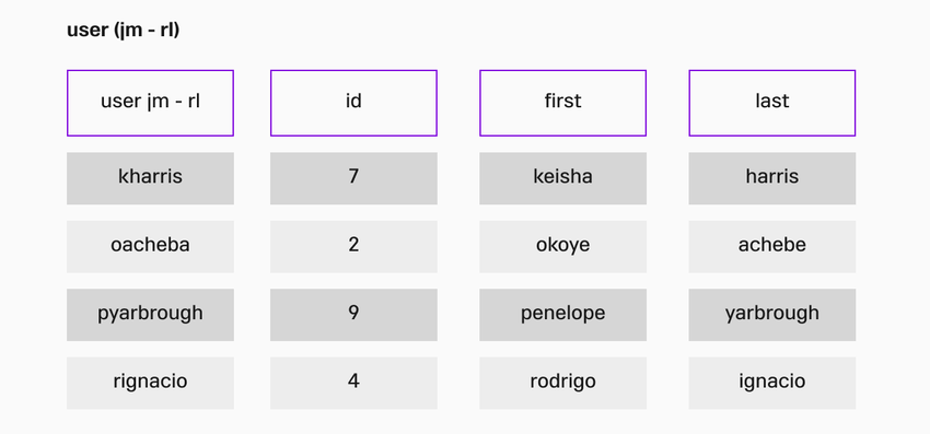 CREATE TABLE people (id INT AUTO_INCREMENT,user VARCHAR(24),first VARCHAR(24),last VARCHAR(24),SORT KEY (user),SHARD KEY (id));
