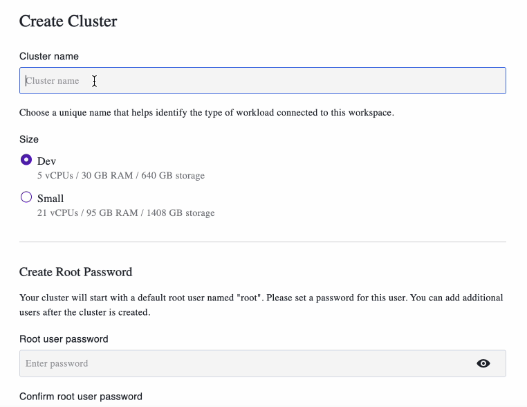 Choose a unique name that will help identify the type of workload connected with this cluster. -