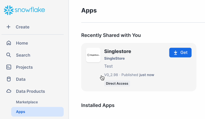 You can get the SingleStore Native App for Snowflake, SINGLESTORE_, from the Snowflake Marketplace.