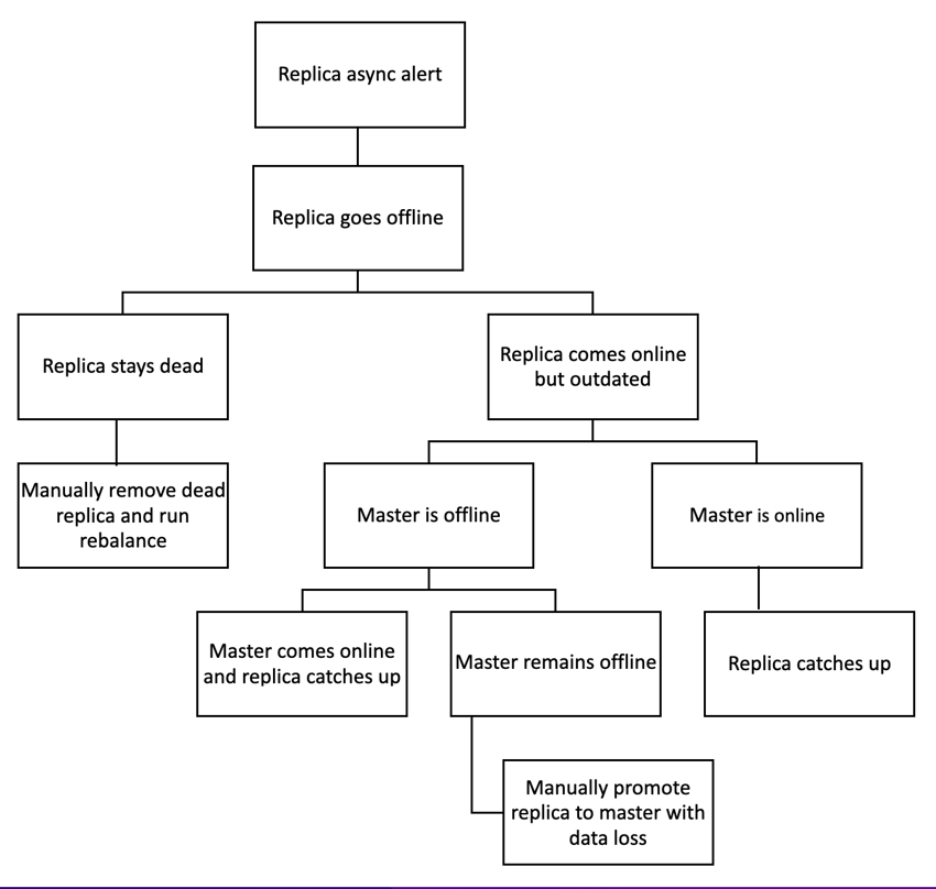 If a database is using synchronous replication and its replica partition fails to respond within five seconds, the replica partition switches to asynchronous replication; this allows the replica partition to not block the current and future replication transactions.