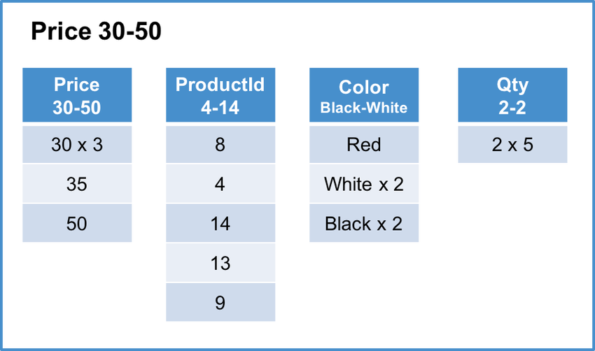 For example, in the above table the query SELECT AVG(Price), AVG(Qty) FROM Products WHERE Price BETWEEN 1 AND 10; will eliminate all segments except row segment #1 Price 4-15.