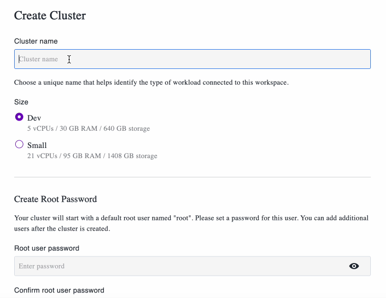 Choose a unique name that will help identify the type of workload connected with this cluster. -