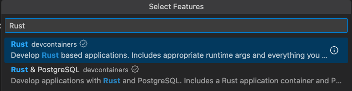 On the Select Features dialog, from the list, select the Rust container.